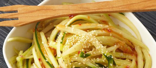 Ingredients 2 European Cucumbers, peeled and cut or shaved into thin strips lengthwise (and kept chilled in ice water) 1/2 cup Stonewall Kitchen Red Pepper Jelly 2 Tablespoons rice wine vinegar 1 Tablespoon tamari Toasted sesame seeds Directions Combine Red Pepper Jelly, vinegar and tamari. Drain cucumbers. Dry well. Toss with dressing, garnish with toasted […]