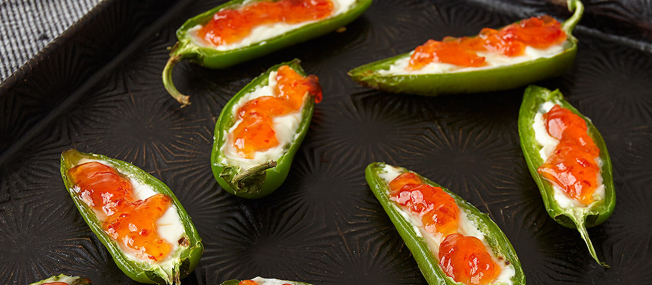 Ingredients 6 jalapeno peppers, cut in half and seeded 1/2 cup cream cheese 1/3 cup Stonewall Kitchen Red Pepper Jelly Directions Place prepared jalapeno peppers on a foil lined baking pan, cut side down. Place pan under broiler and cook peppers until charred and tender. Remove peppers from oven. Fill peppers with cream cheese. Return […]