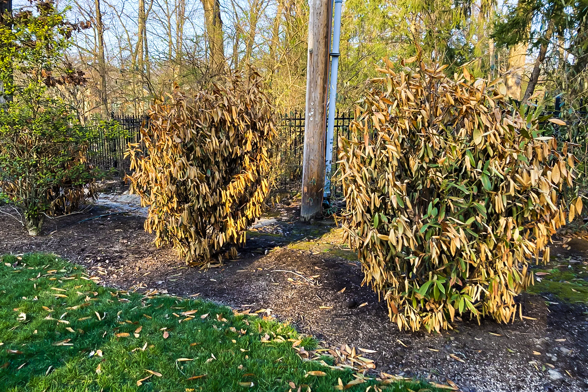 Skip laurels are southern plants that have become popular in northern regions as an evergreen hedge. While they are beautiful and resilient, they still require proper care to survive harsh winters. Unfortunately, this winter has been particularly cold and windy, which can lead to winter burn—a condition where the moisture in the leaves evaporates more quickly than the roots can supply it, especially in new plantings that haven’t yet established extensive root systems. If your skip laurels are looking yellow, they’re probably suffering from winter burn. The good news is: they’re likely still alive. Their new growth, which will emerge in the spring, can cover up any dead or damaged areas.